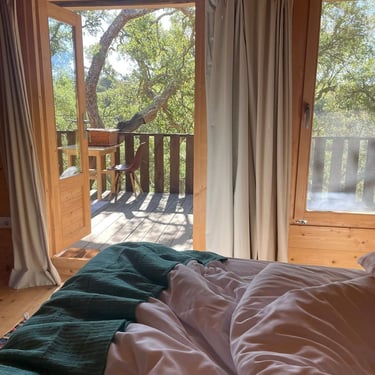 Designed for rest: "Each cabin is free of digital distractions. No TVs, no Wi-Fi. Just a comfortable bed, a journal, and the sound of nature."